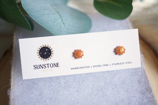 Faux Orange Citrine Sun Stud Earrings | Statement Minis