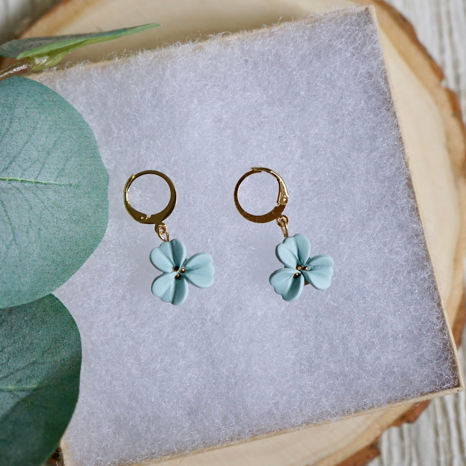 Spruce up your style with Mint Flower Dangles! These handcrafted floral earrings add the perfect touch of cuteness to any outfit. Made with polymer clay and adorned with copper jewels, they're gentle on sensitive ears with nickel-free, hypoallergenic hoops. Perfect for everyday wear, grab a pair now!