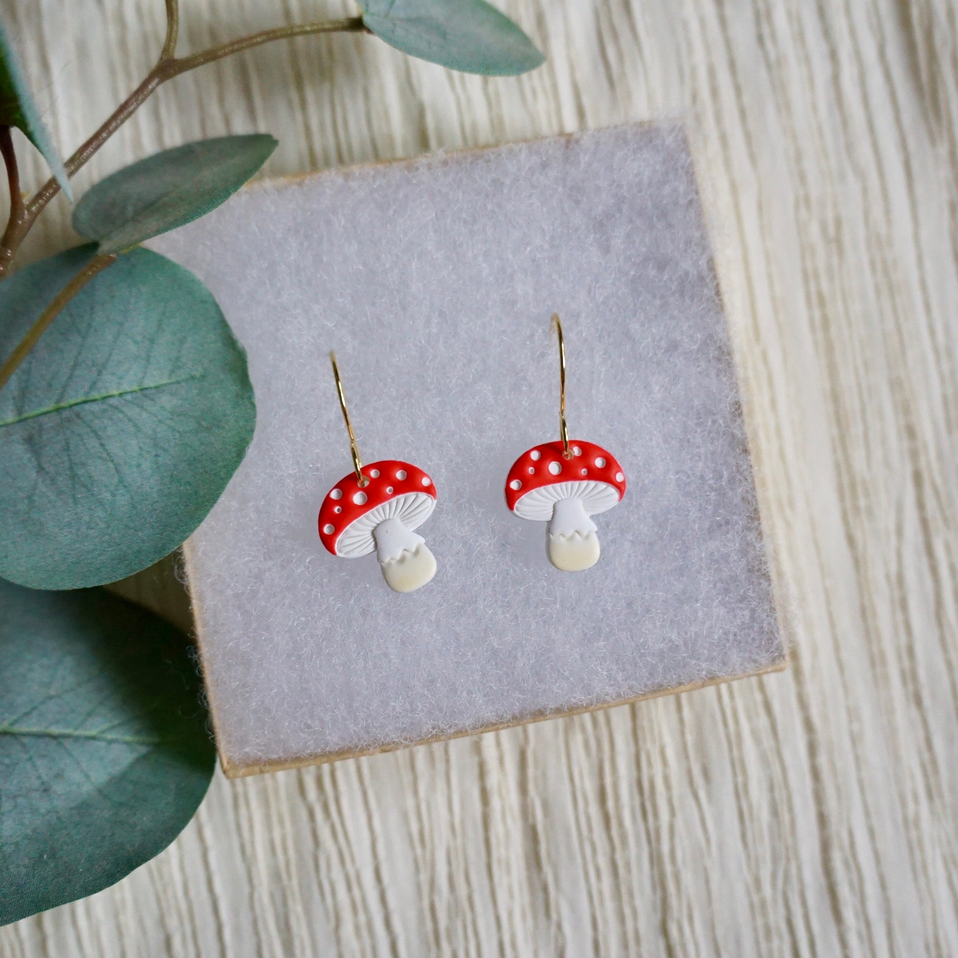 Discover the cutest trend with our Red Mushroom Dangle Earrings. Hand-crafted with polymer clay and nickel-free, hypoallergenic gold-plated hooks, they add a playful touch to your Fall look. Stand out with these quirky earrings and add them to your collection now!