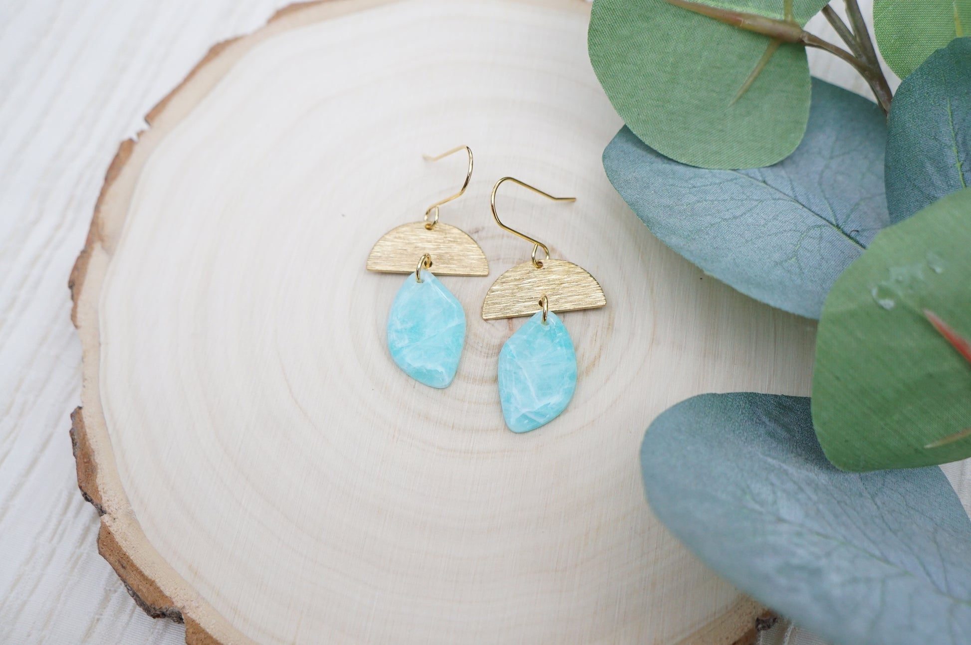 • Materials: Polymer clay, brass components, and nickel-free stainless steel earring hooks.