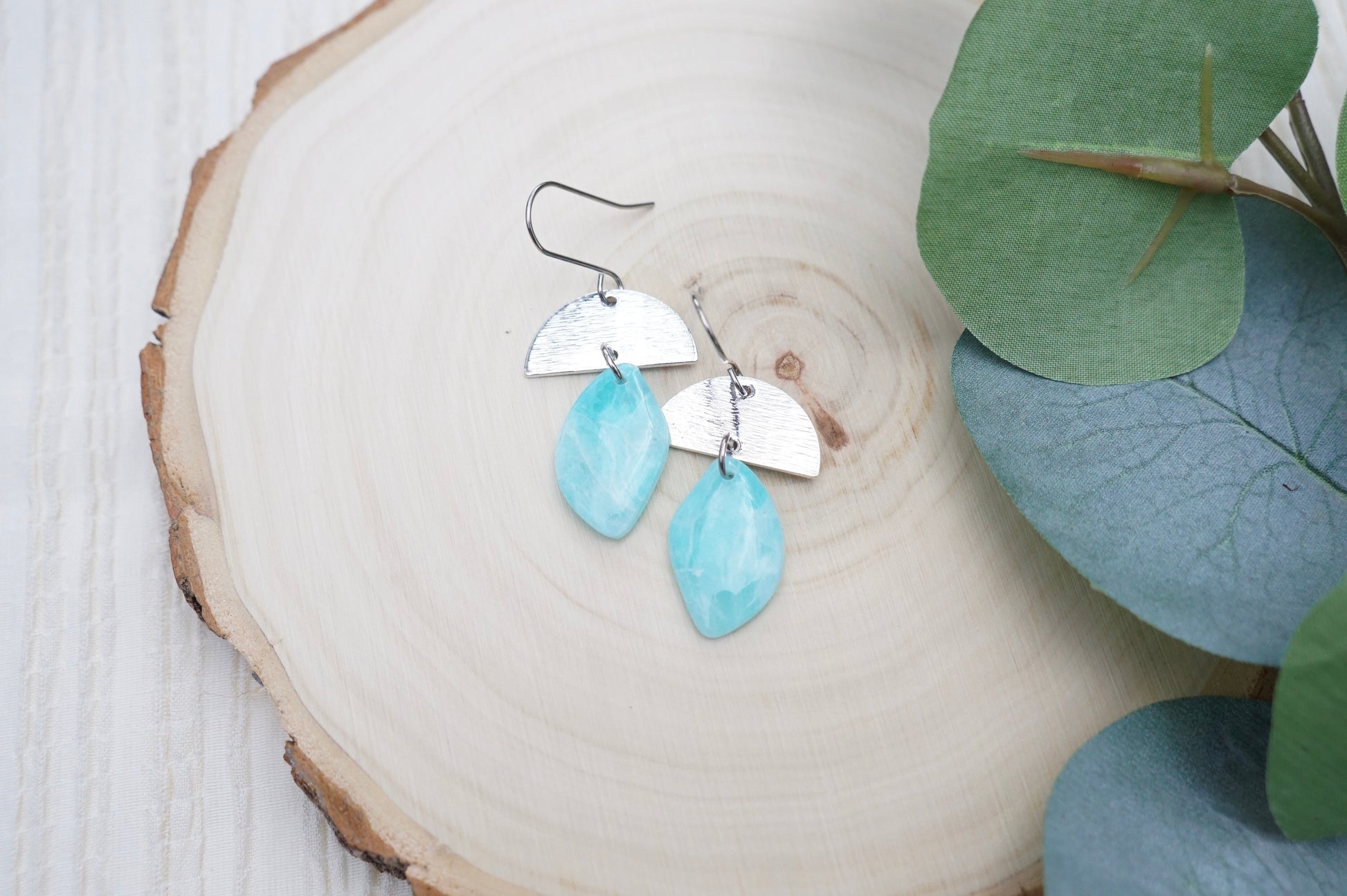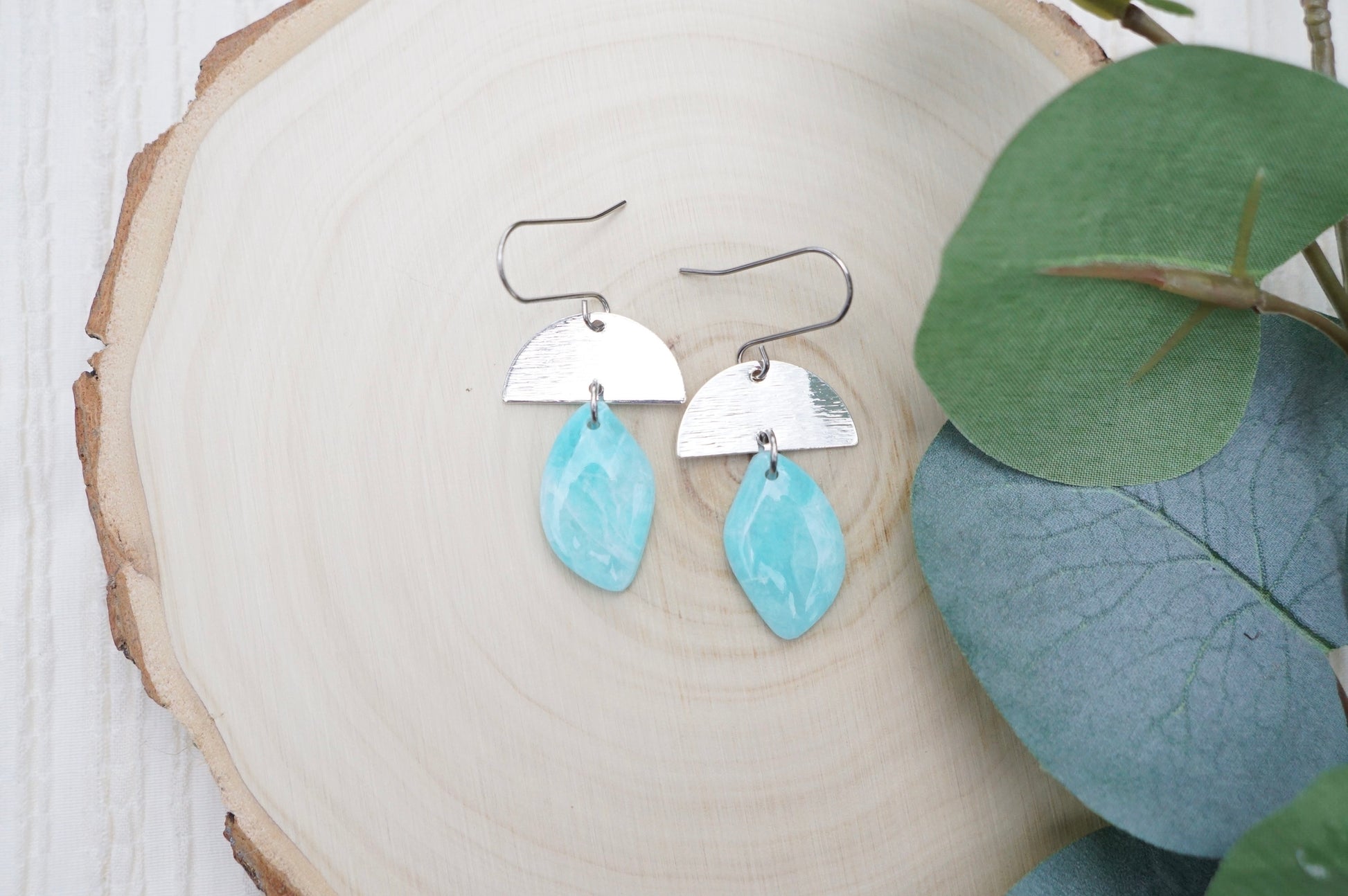 • Materials: Polymer clay, brass components, and nickel-free stainless steel earring hooks.