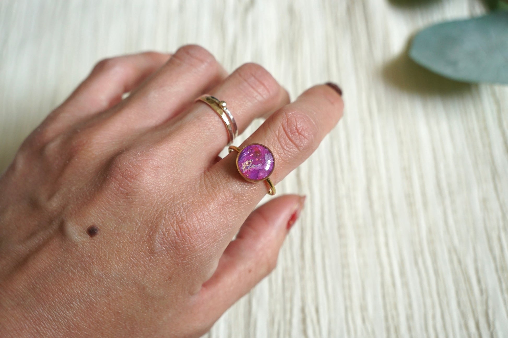 Step into a world of mystery and elegance with the Purple Haze Collection — a dreamy line of handcrafted rings inspired by swirling twilight skies and the soft glow of golden dusk. Each faux stone is created from polymer clay and hand-marbled in rich shades of violet, lavender, and deep plum, accented with wisps of shimmering gold for an ethereal touch.