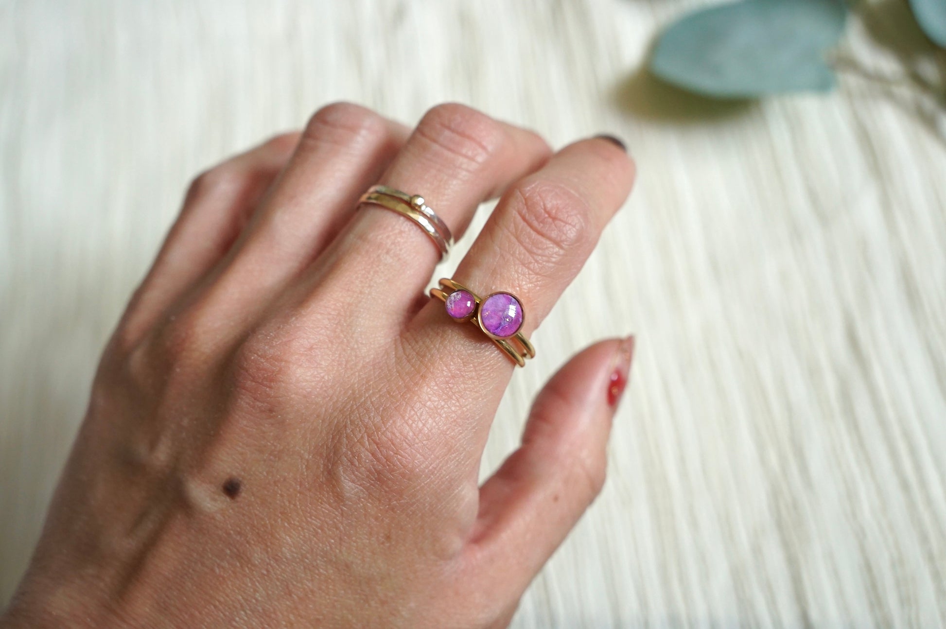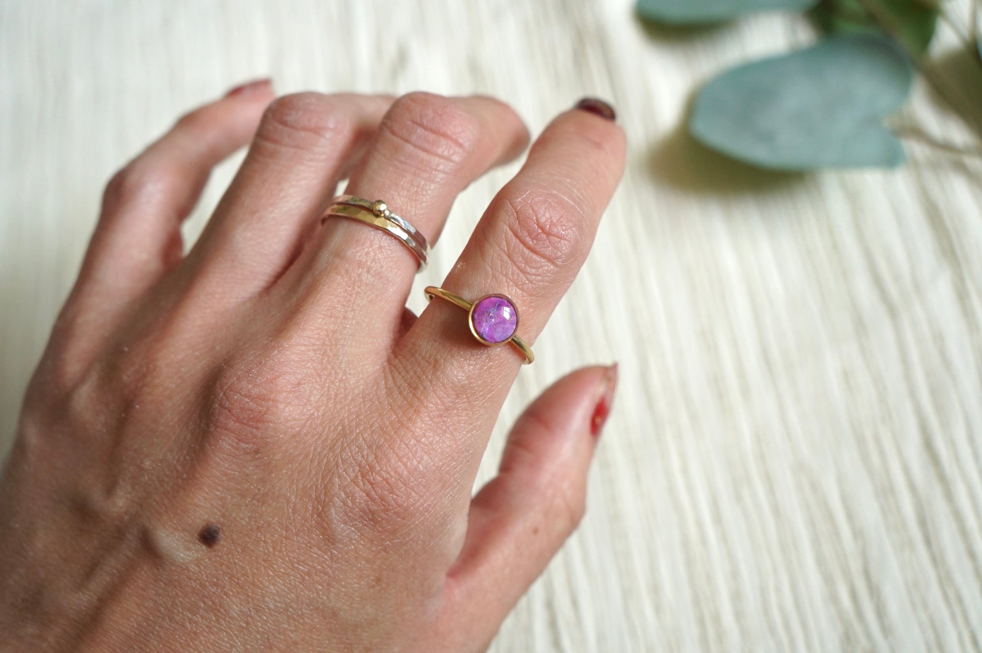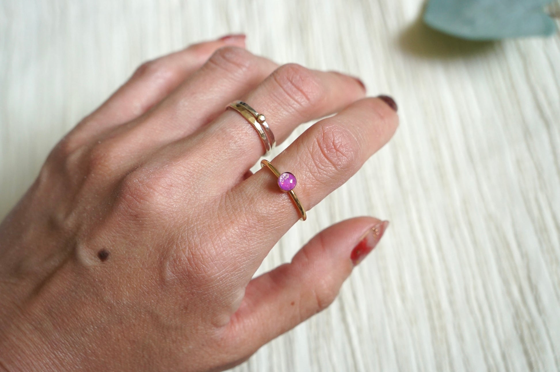 This listing is for ONE ring. Please select your stone size and band color (silver or gold) when ordering. Each ring is made by hand in small batches, so no two will ever look exactly the same — giving you a one-of-a-kind piece full of intention and magic.