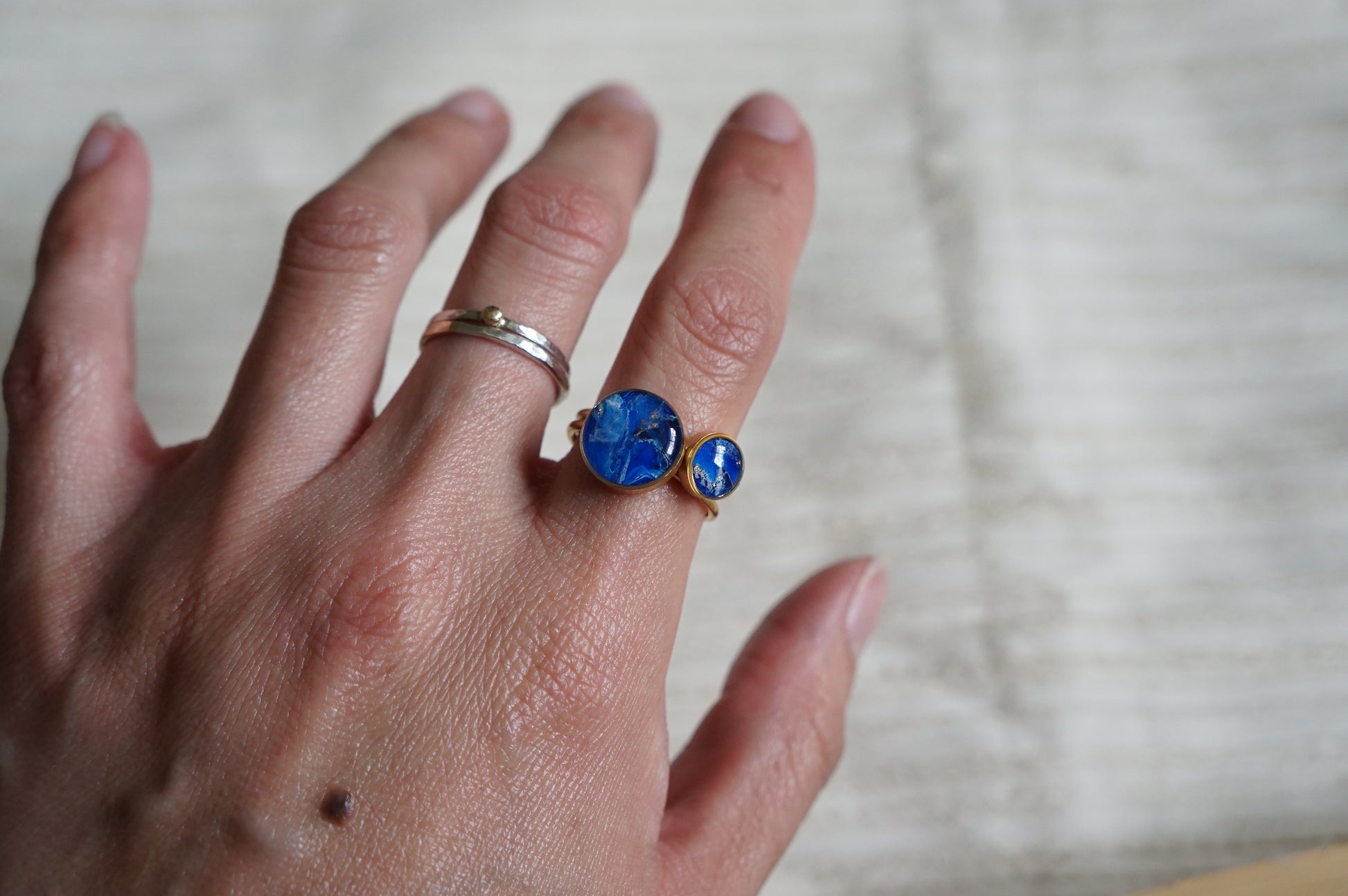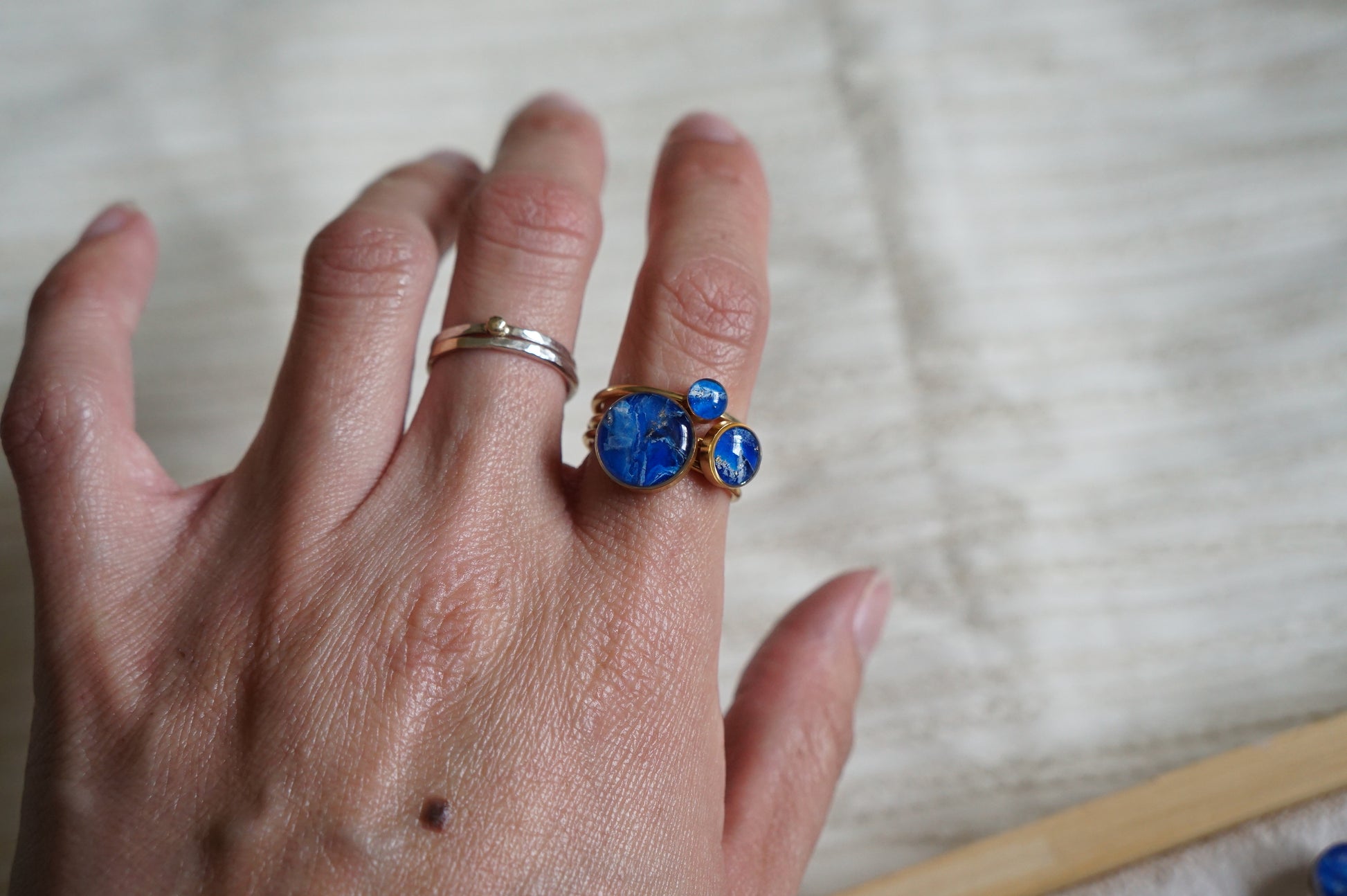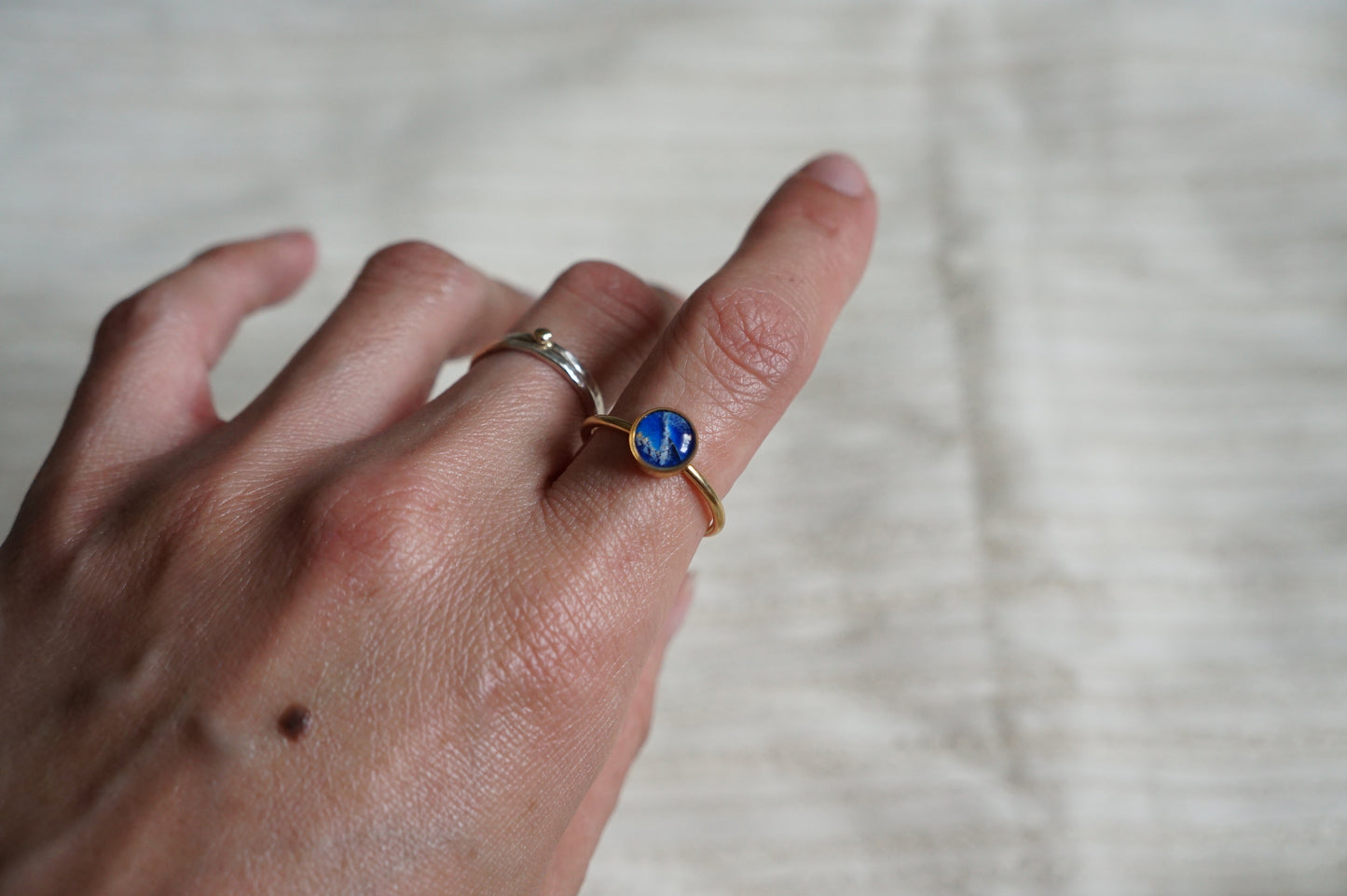 This listing is for ONE ring in the stone size and band color of your choice. Due to the handmade nature of this collection, the stone patterns may vary slightly, making your ring completely one of a kind.