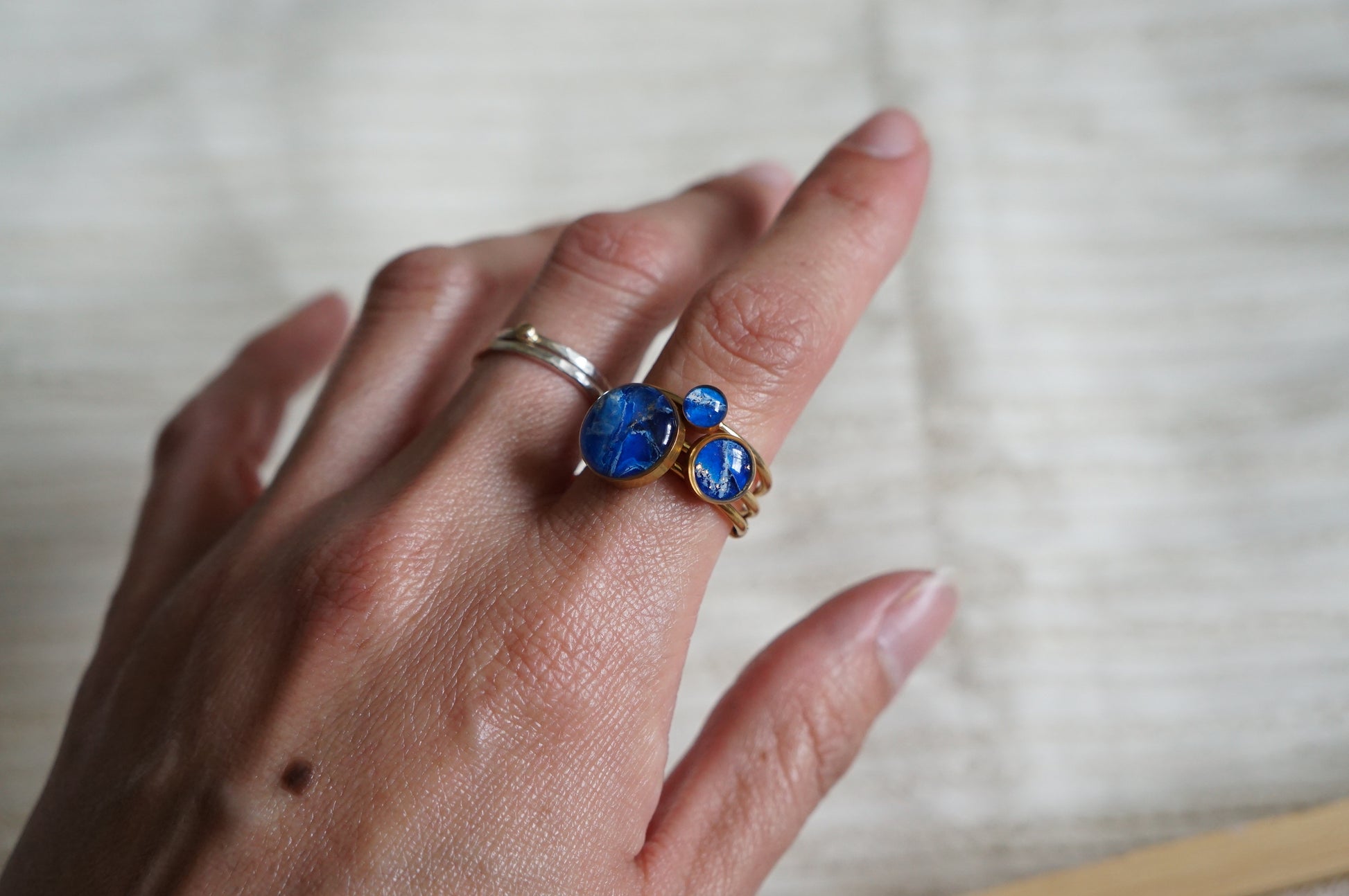 Each ring in this collection features a handcrafted faux stone made from polymer clay, infused with earthy textures and swirling cosmic tones. Designed to echo the organic patterns found in nature, no two stones are ever alike — each one is a mini work of wearable art.