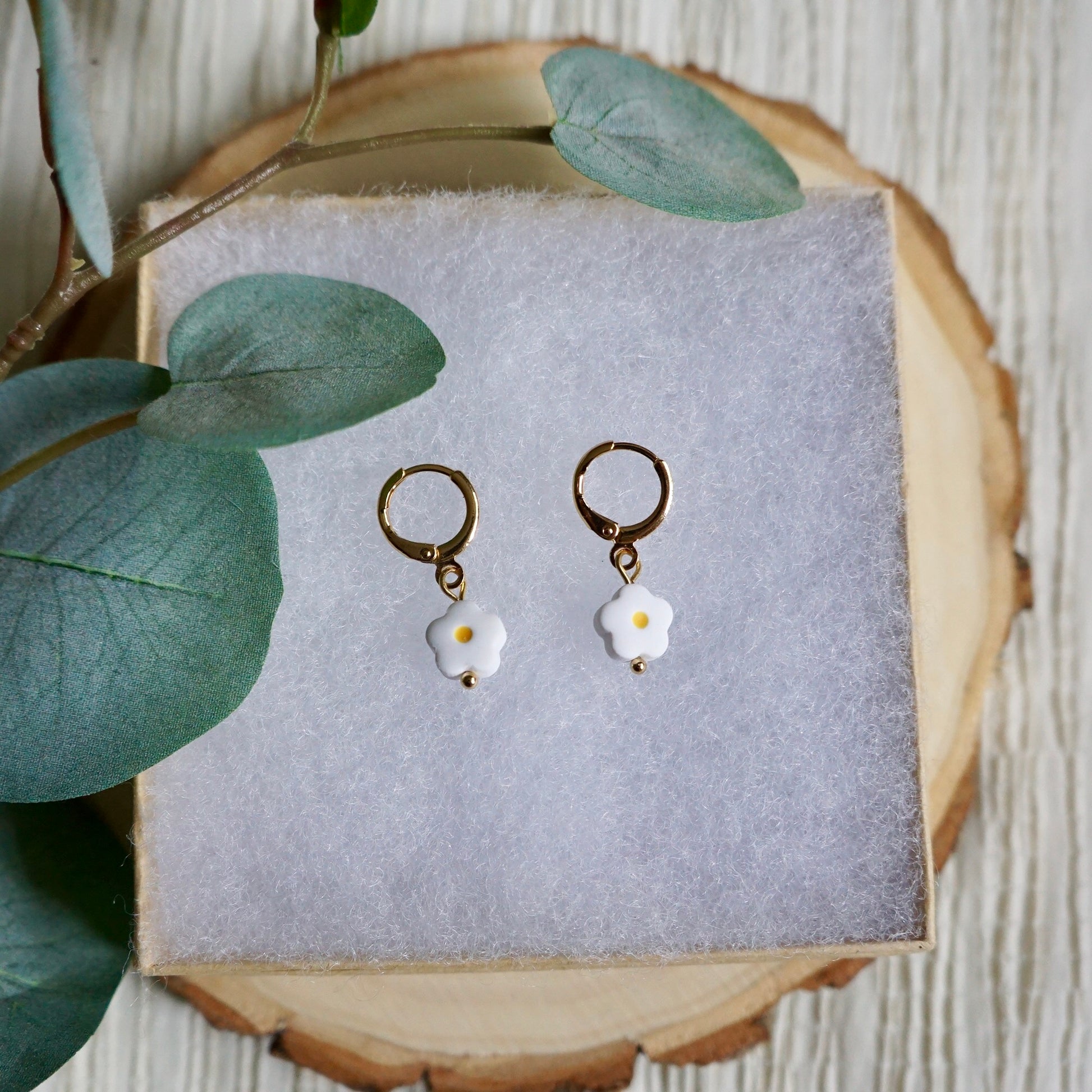 Upgrade your everyday look with our White Flower Earring Dangles! These versatile earrings are perfect for all ages and can be paired with any outfit. Dress up your comfy clothes or add a touch of style to your minimalist wardrobe. Want even more flair? Pair them with our gold-filled ear cuff. A must-have for any fashion-forward individual!